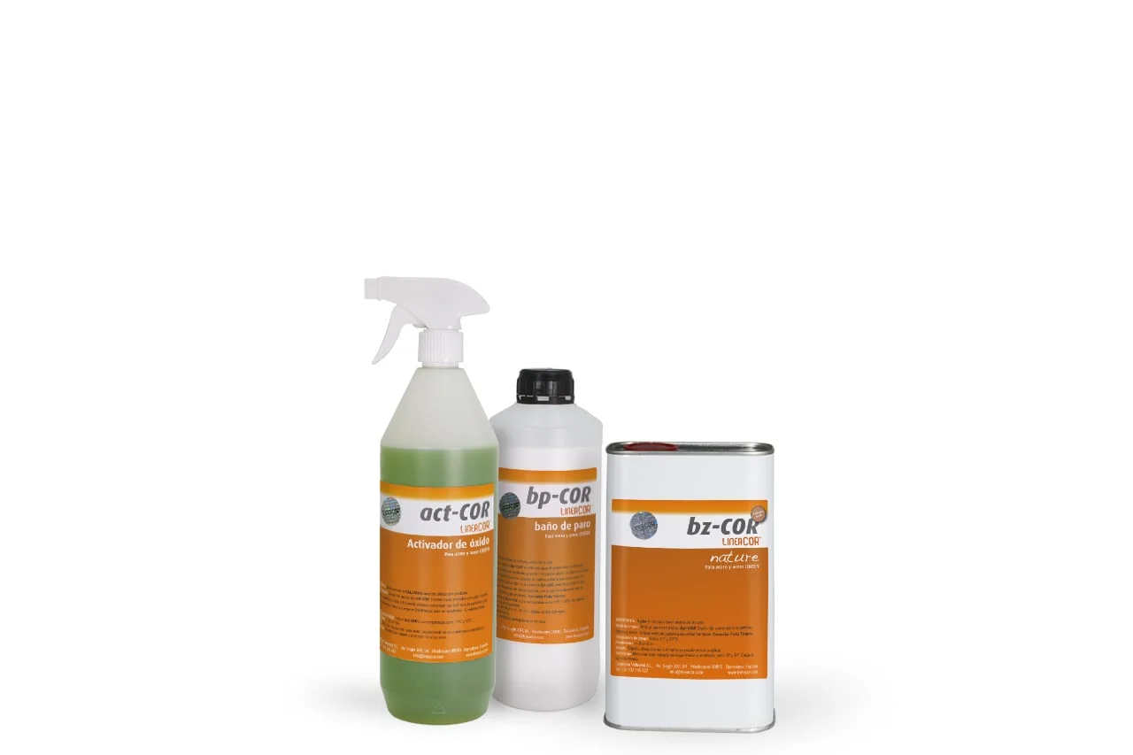 Pack de productos lineaCOR para el tratamiento completo de una superficie de acero o acero corten para interiores