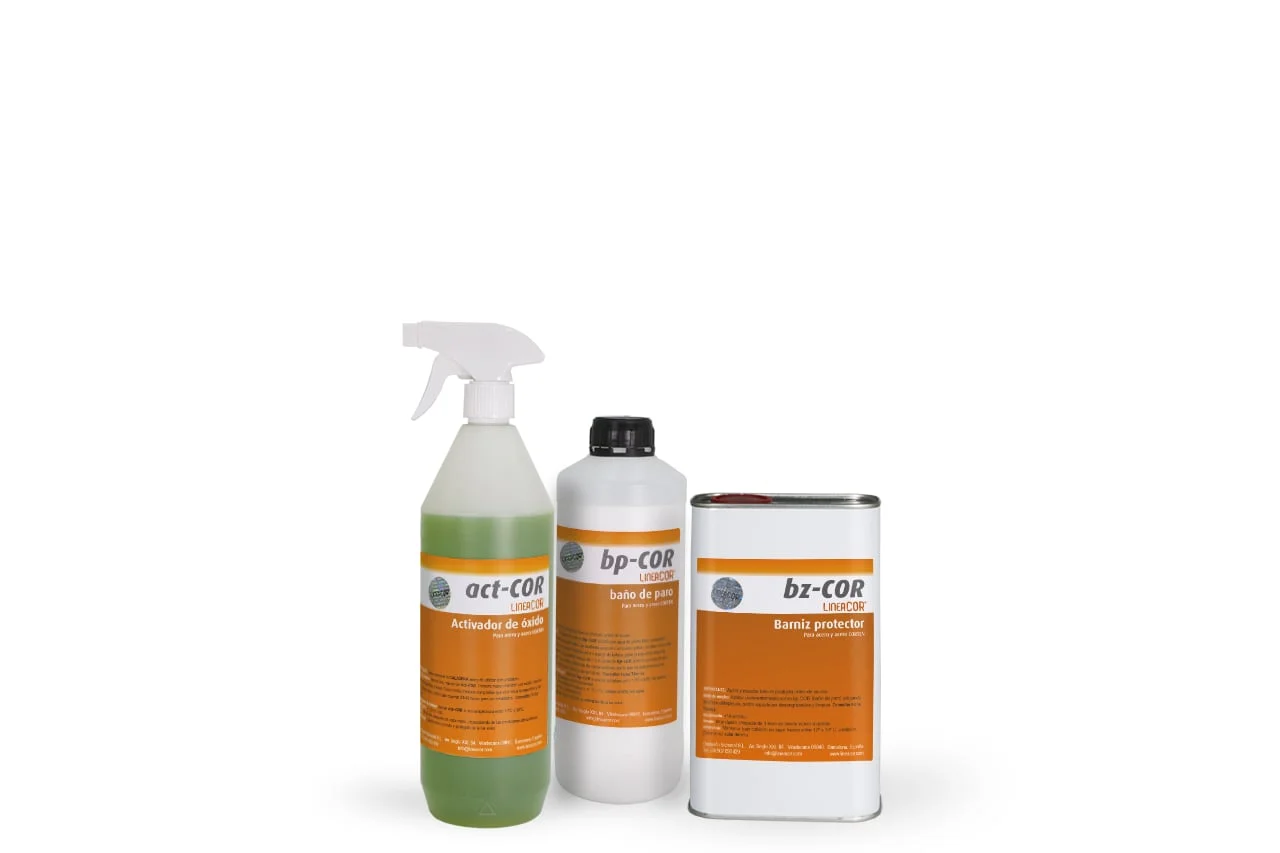 Pack de productos lineaCOR para el tratamiento completo de una superficie de acero o acero corten para interiores